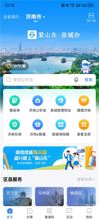 爱山东泉城办最新版下载v2.8.8 安卓版爱山东泉城办最新版下载是济南市信息中心倾情推出的一款生活政务移动服务平台,平台拥有生活服务,公积金服务,户籍户政,人社服务,不动产服务,房屋服务,预约服务,交通出行等方方面面功能服务,可以给予用户更智慧便捷办事生活。