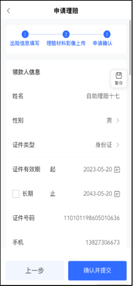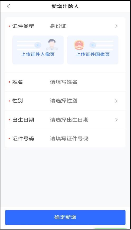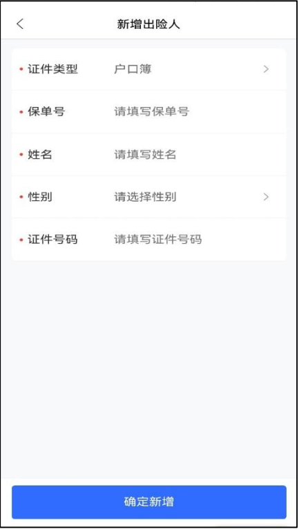 (5)新增出险人。通过客户信息五要素或保单+三要素定位新增的出险人。 前端自助理赔申请成功提交后,该新增出险人会自动出现在出险人选择区域。