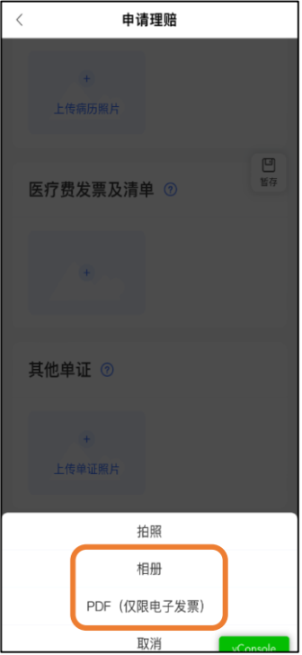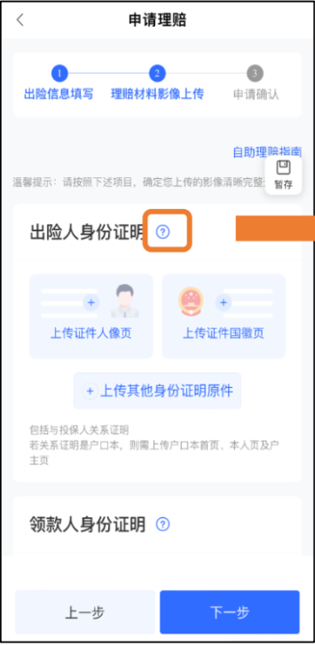 (4) 自助理赔申请过程中,请及时点击【暂存】按钮,避免网络中断或异常闪退导致需要重新操作。“暂存”的申请可在“理赔服务--理赔记录”中找到。