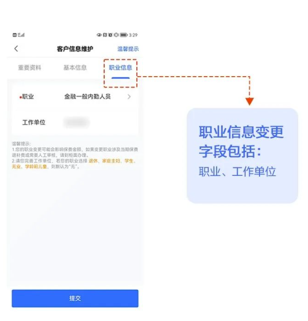 02信息录入:支持对被变更人的重要资料、基本信息及职业信息进行信息维护。