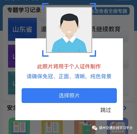 进入培训系统后,首先进行拍照操作,用于之后培训过程中的人脸识别以及培训完成后的电子证照的生成