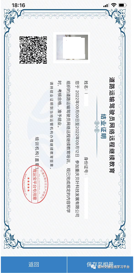 培训完成后成生继续教育结业证明,驾驶员可凭该证明到管理部门盖章