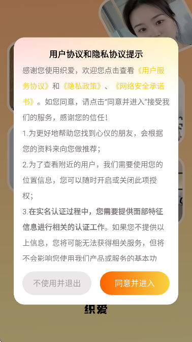 织爱app是一款高质量的社交软件,它能够根据每个用户的特征为其精准匹配适合的用户,帮助用户轻松交到志趣相同的朋友,而且里面所有的用户都经过了严格的实名认证。