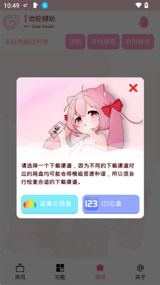 5、相关游戏画质修改,游戏加速等功能通过添加模组进行使用,模组的搜索及下载可在app内完成