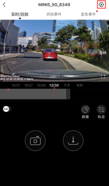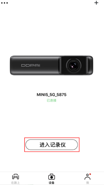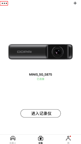 手机盯盯拍App连接记录仪后,在盯盯拍App的“设备”界面,点击界面左上角的三点图标,
