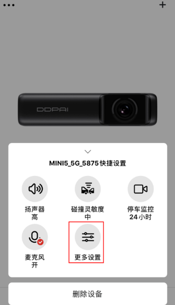 在弹出的记录仪快捷设置菜单中点击“更多设置”