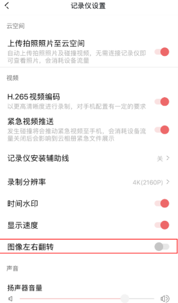 进入“记录仪设置”界面,打开或关闭“图像左右翻转”