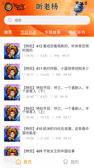 3、点击节目列表,这款可以查看杨侃最近的各种视频解说。