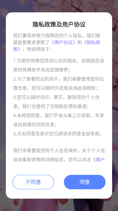 2、阅读隐私政策和用户协议后点击同意;