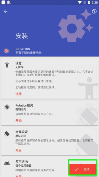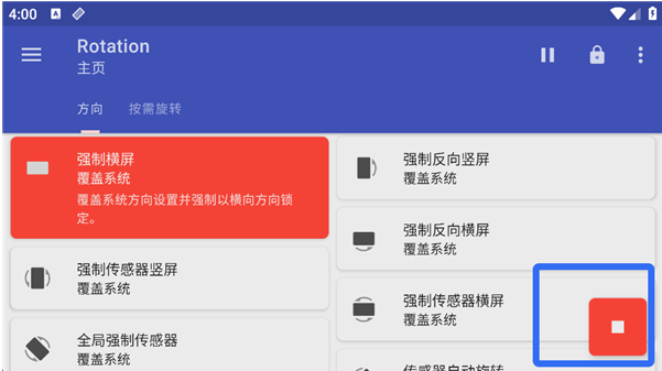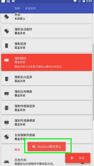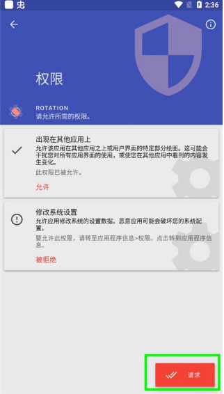 3、以强制横屏为例,点击并选择后,系统会请求获取权限,只需激活即可开始。
