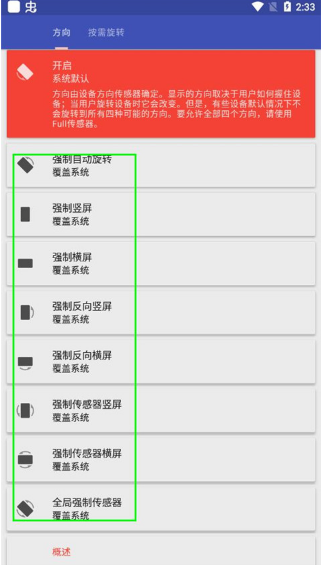 2、帮助用户强制改变屏幕显示方向,并根据需要进行设置。