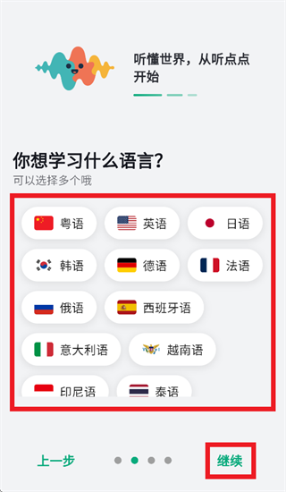 选择想学习什么语言,点击继续