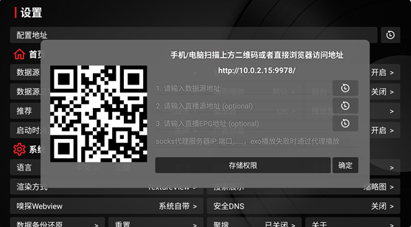 4、在这里可以输入源地址,然后点击下方存储权限,授权获取权限,之后点击确定即可。