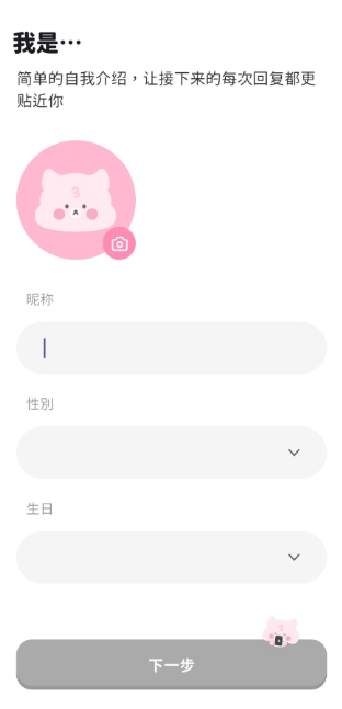 5、然后就是填写你的名字、性别和生日,再选择你想认识哪个圈子的角色了,不过这些都可以后期到软件内更换修改的。