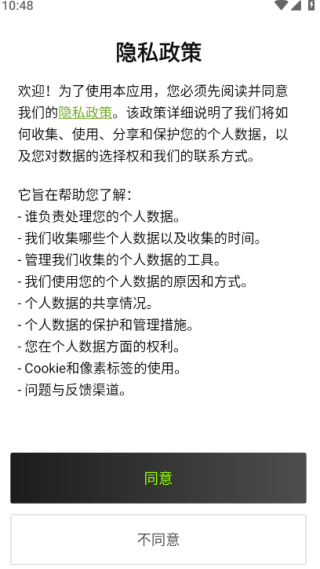 1、下载应用后打开并阅读隐私政策,点击同意按钮。