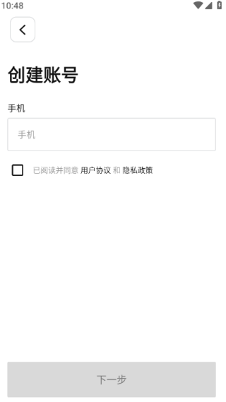 3、在线创建个人的新账号,输入手机号码,勾选下方已阅读并同意。