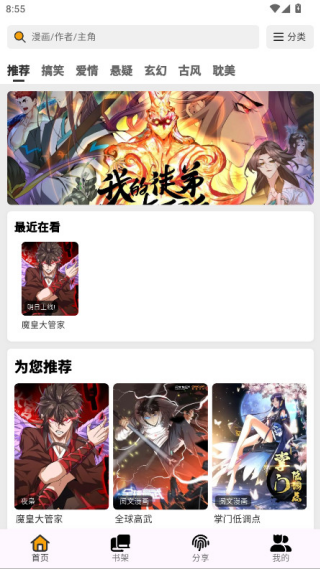 2、提供漫画搜索和阅读,通过类别、搜索等找到目标,一键即可开启。