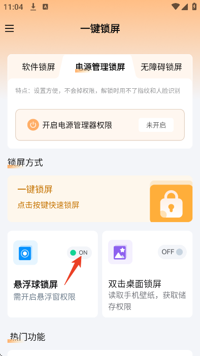 2、选择一种锁屏方式,这里用悬浮球锁屏做演示;
