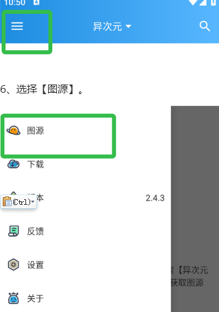 5、进入 异次元漫画app,点击左上角三横线标识。