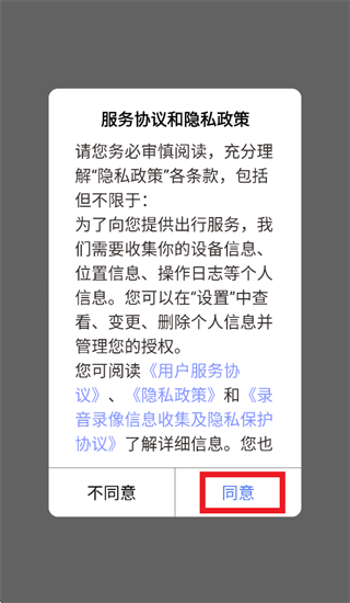 打开如祺车主司机端app,先同意服务协议和隐私政策