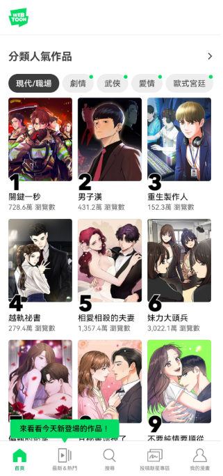 webtoon漫画app下载安卓v3.1.4 最新安卓版webtoon漫画app下载安卓是一款十分火热的免费追漫神器,海量精品漫画,永久畅读,免费日更,超高清画面,让你体验全新的视觉享受,感兴趣的朋友可以来下载。