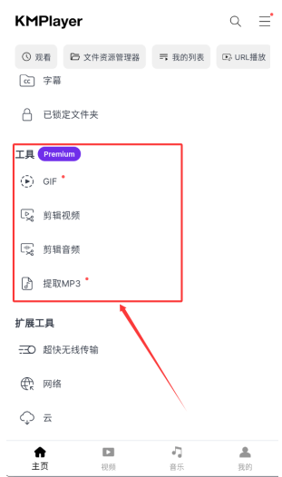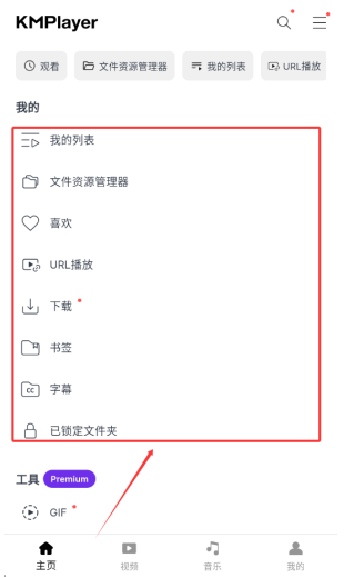 2、主页提供播放列表、文件管理、收藏内容、本地播放、下载与字幕管理。