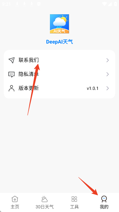 2、点击下方的我的,选择联系我们;