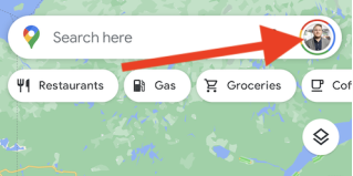 一旦你准备好谷歌地图应用程序,打开它。点击你的化身在窗口的右上角,在搜索栏的右侧。