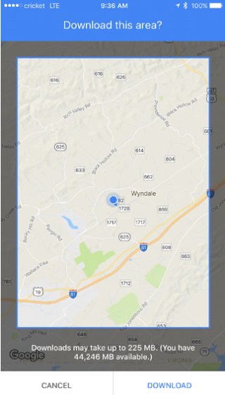 5、一旦您确定了一个可接受的区域,点击“下载”按钮。如果您不使用Wi-Fi,则必须通过移动网络批准下载。