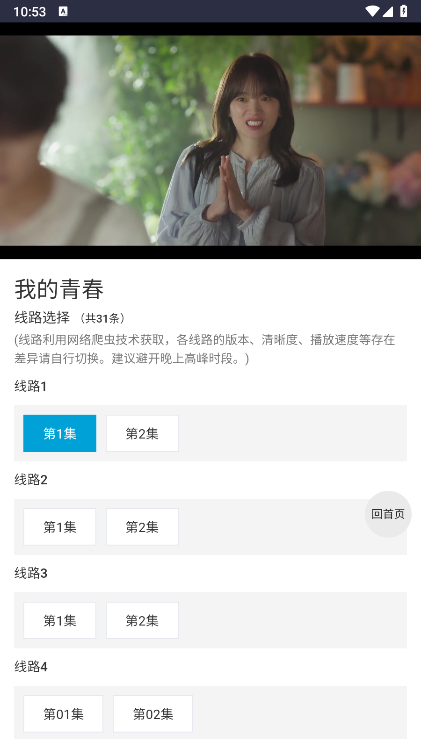 3、进入即可选择线路点击播放了。
