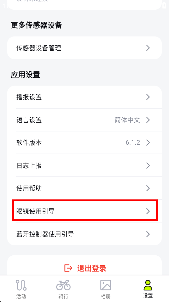 下载安装好BleeqUp智能眼镜app后,点击我的,找到眼镜使用教程