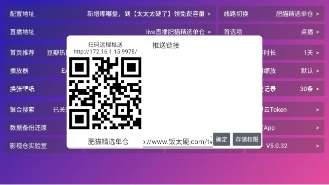3、输入http://www.饭太硬.com/tv,点击确认,即可增加