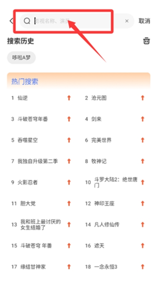2、也可以点击上方的搜索栏,直接输入要看的动漫名称等待搜索结果