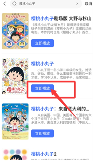 3、搜索出来以后,点击立即播放就可以观看动漫了