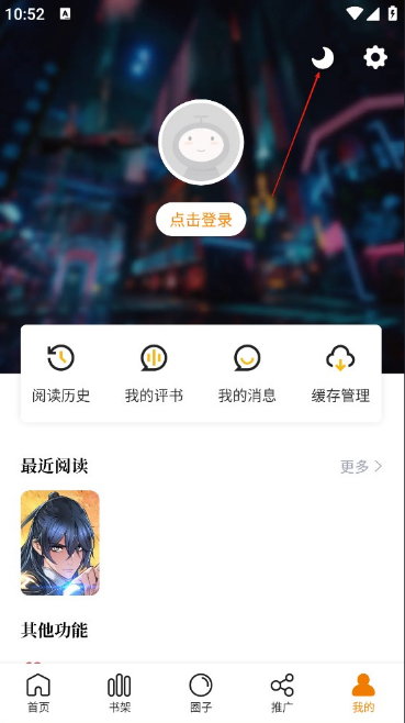 3、在阅读的过程中也可以进行切换,点击漫画中间位置唤起设置,然后点击夜间即可开启