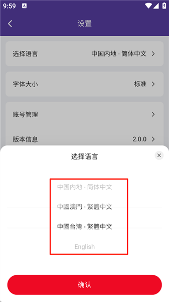 3、点击选择语言