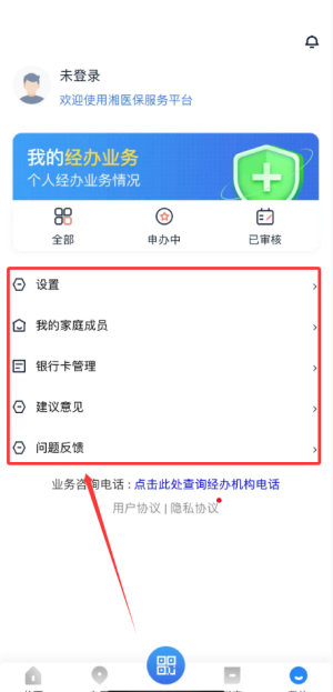 4、进入我的个人中心能够调整软件设置管理家庭成员参保信息维护绑定银行卡账户并提交服务改进建议。