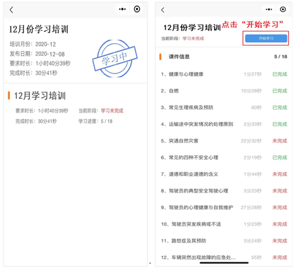 第三步:选择企业下发的学习计划,点击开始学习即可。