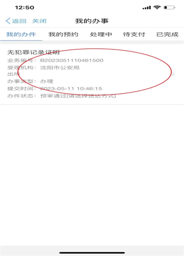 第八步 审核通过后在“辽宁公安”APP“我的证照”模块即可查看“无犯罪记录证明”电子版