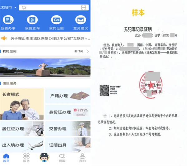 注册登录成功后在首页左上角选择好归属地城市,然后在顶部搜索无犯罪记录证明或点击首页的“证明出具”模块