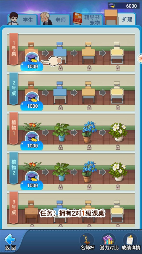 3、升级条件:想要提升校园等级必须满足两个前置条件:首先是学生要通关相应的考试,其次是要升级校园里的相应装饰,满足条件后再消耗一定量的学费,即可完成升级。