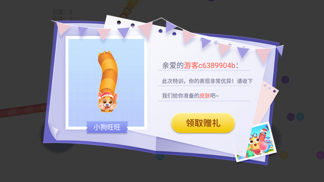 4、控制你的蛇吃掉画面中的圆点,这些圆点是食物,吃掉他们以后,蛇就会边长变粗;当然,在游戏中还会出现其他的蛇,玩家需要灵活利用加速和策略,只要让敌蛇的头部碰到你的身体,敌蛇就会死亡并留下海量“遗产”!