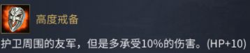 一皮技能:高度戒备(为周围友军扛伤害,且免疫连击、会心、法术连击的伤害)