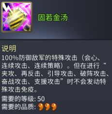 一技能固若金汤,可以防御连击、会心、法术连击,配合一皮技能,可以为队伍的生存能力增加很大的空间,且可以避免敌方玩家带上玉玺(会心效果),因为带上了玉玺,打郝昭或者其保护的对象,伤害是无效的。且敌方法师的法术连击伤害无效,可以说是神技了。