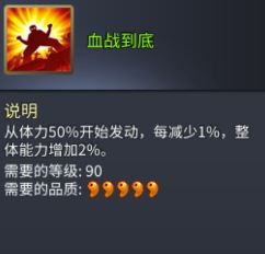 三技能血战到底。整体能力增大,是指面板属性增加(格挡率也会增加,配合二技能,到残血的时候可以像泥鳅一样,躲避贼高)