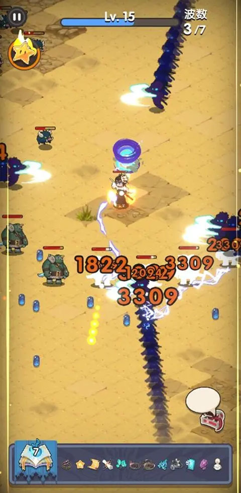闪电链、追踪弹、冰冻射线、飞去来同类技能,均为自动索敌技能,前期因为范围较大较为好用,在关卡后期伤害略显不足,可根据实际需求选择。其中,冰冻射线附带冰冻控制效果,在某些情况下相对好用。