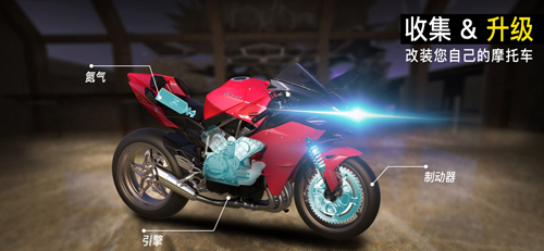 成为优秀的摩托车手除了必要的冒险精神外,炫酷的摩托车也是不可或缺的!我们车库中拥有大量炫酷的摩托车,来自世界各地的车型。升级,改造的玩法也让这场在手掌中的荣耀之战变得奇妙无比。
