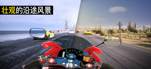 3、简单的左右加减速按钮,玩家指尖长按即可控制摩托车加速或减速等。
