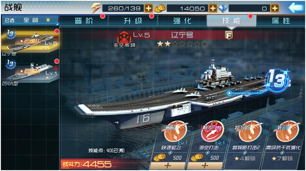 1、升级战舰,需要消耗“战斗日志”道具,来提升战舰等级,每提升1个等级,该战舰增加一定的属性;