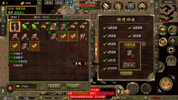 3、成长与装备:游戏提供多样化的角色成长路径,包括装备强化、技能修炼、神将招募等。装备按品质分为白、绿、蓝、紫、橙五等,玩家可通过击败BOSS、完成副本获取极品装备。